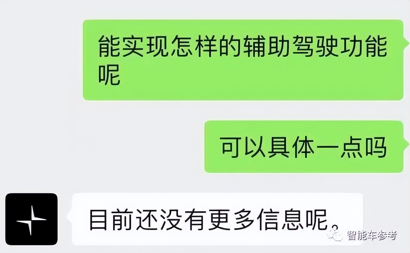 智能车参考今天也咨询了极星的线上客服,当问到新车极星3有何辅助驾驶功能时,那边隔了好久,最后给出这样的回复: