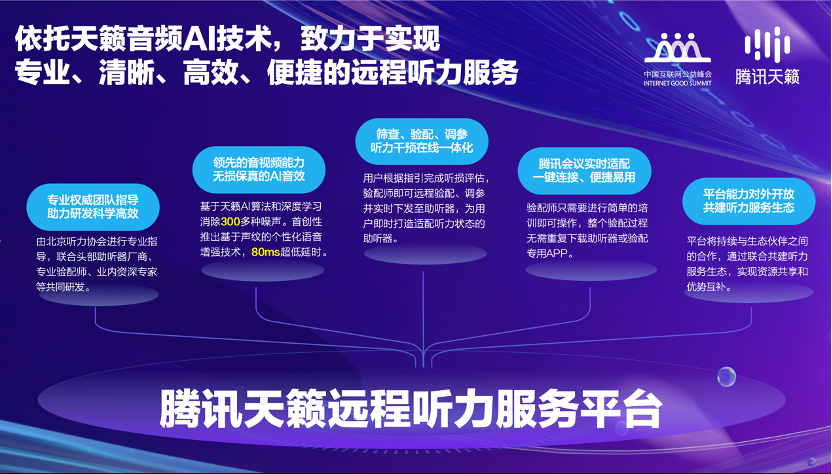 关注听力健康干预全流程,腾讯会议天籁实验室与腾讯SSV银发科技实验室此前共同发布了国内首个集成听力筛查、听力科普及听损模拟的一体化小程序——银发听力健康,并推出了“小程序+助听器+听力健康服务网络”的全流程、系统化解决方案。