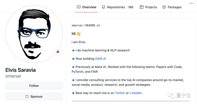 开发的这位小哥叫做Elvis Saravia,从他个人页面来看,是一位独立的机器学习和NLP研究人员,专注于大语言模型、信息检索和生成式AI。