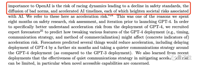 对OpenAI来说,(科技的)竞赛会导致安全标准的下降、不良规范的扩散、AI发展进程的加速,它们都加剧了与人工智能相关的社会风险。