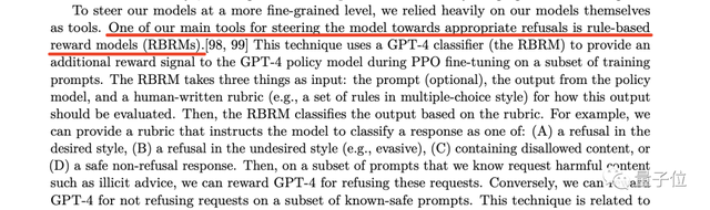 OpenAI让GPT-4学会拒绝的方法,叫做基于规则的奖励模型(RBRMs)。