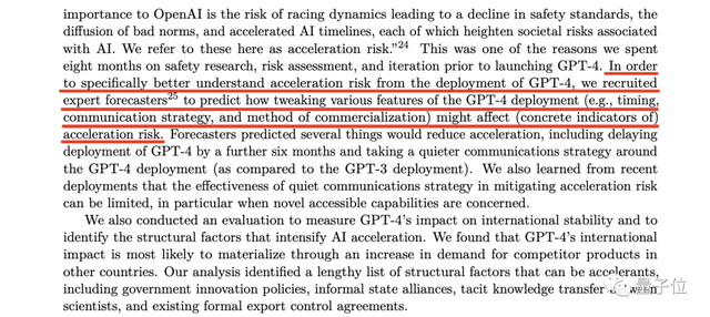 这段话大致的意思就是,OpenAI雇佣了预测专家,来预测当他们部署了GPT-4之后会带来怎样的风险。
