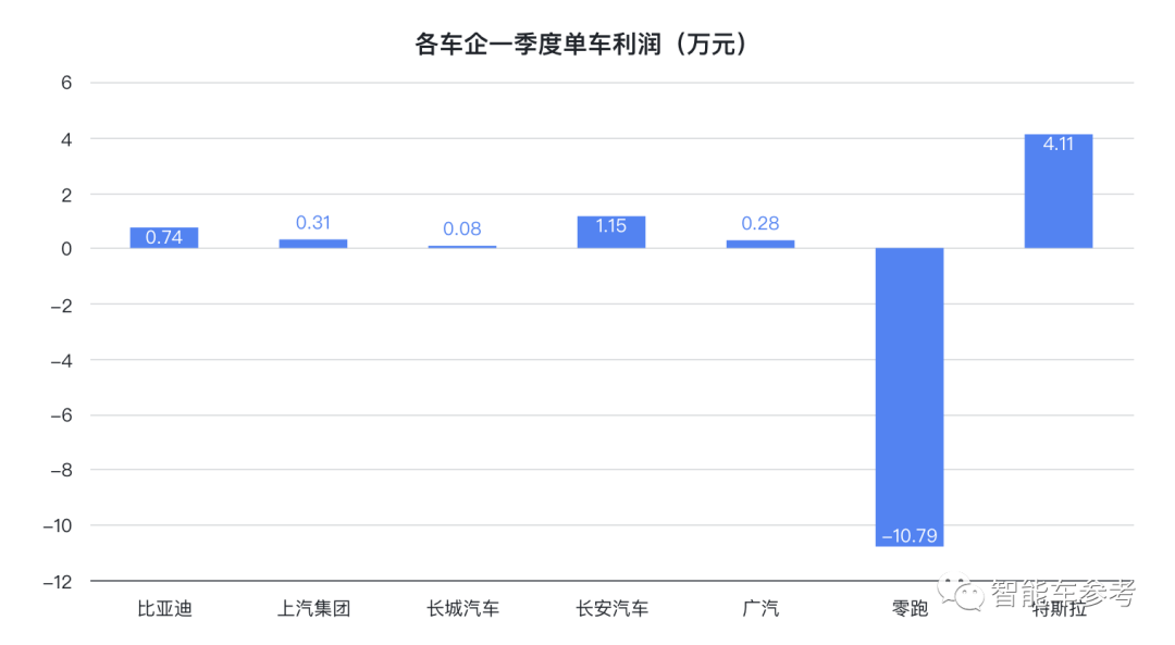 更直观的,从卖一辆车大概能赚多少钱来看,比亚迪也能排进前三。