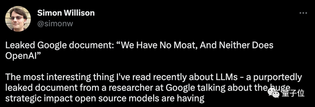 在这场大模型军备竞赛中,我们没有护城河,OpenAI也没有。