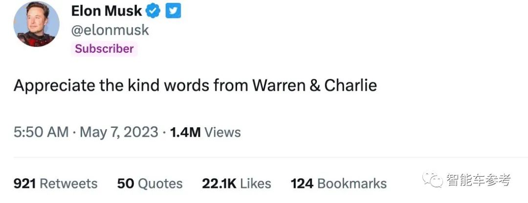 提问:记得查理·芒格之前说过,会更想要雇一个智商120到130的,而不是雇一个智商150而觉得自己170的,当时想说的这个智商更高的人,是不是指马斯克?他最近在特斯拉、SpaceX都取得了一些新成果,现在你对马斯克的看法发生改变了吗?仍旧觉得马斯克高估了自己吗?