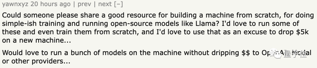这位网友就表示自己太期待在自己的设备上运行LLM了,宁愿花5千美元购置设备也不想给OpenAI交一分钱。