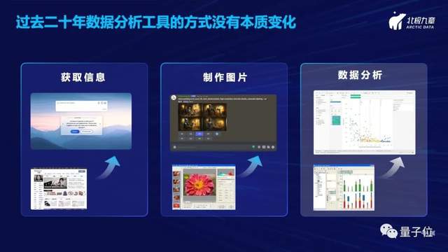 回到数据分析,我们使用的工具和交互方式和20年前几乎是一模一样,我们可能花半年的时间学习一个复杂软件,学会怎么样分析数据、怎么样配图、怎么样制作看板。
