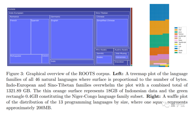 BLOOM拥有1.61TB文本,包含46种自然语言和13种编程语言。