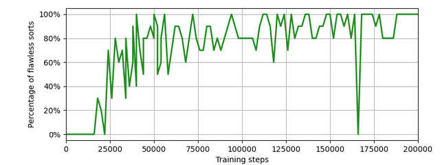 结果显示,随着训练步数的增加,模型给出的数字顺序越来越完美。