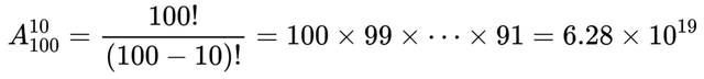 假如从1-100中随机选择10个数字,并将其顺序打乱,将一共有这么多种情形: