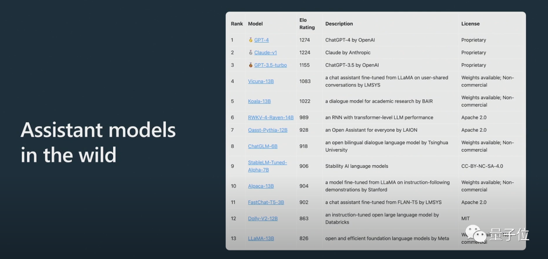 Karpathy认为目前最好的开源模型是Meta的LLaMA系列(因为OpenAI没有开源任何关于GPT-4的内容)。