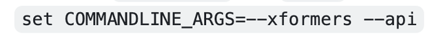 并且确保在“webui-user.bat”中设置了“—xformers”和“—api”命令行参数: