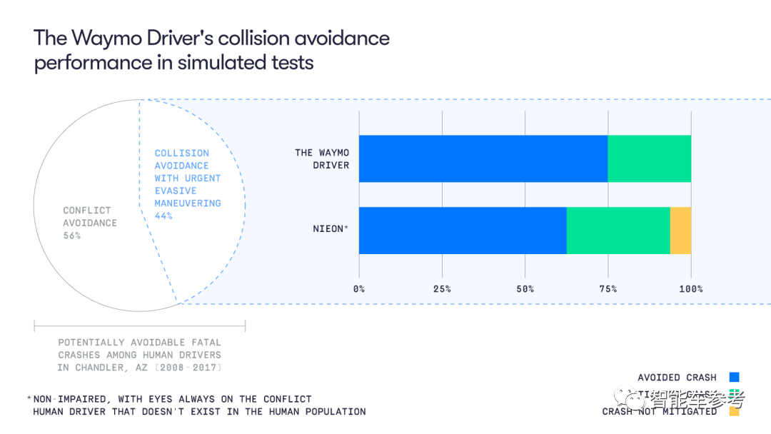 在Waymo曾经发表的一篇论文里,他们论证了自己的AI司机比NIEON模型表现更好,能够规避更多起碰撞事故的发生。