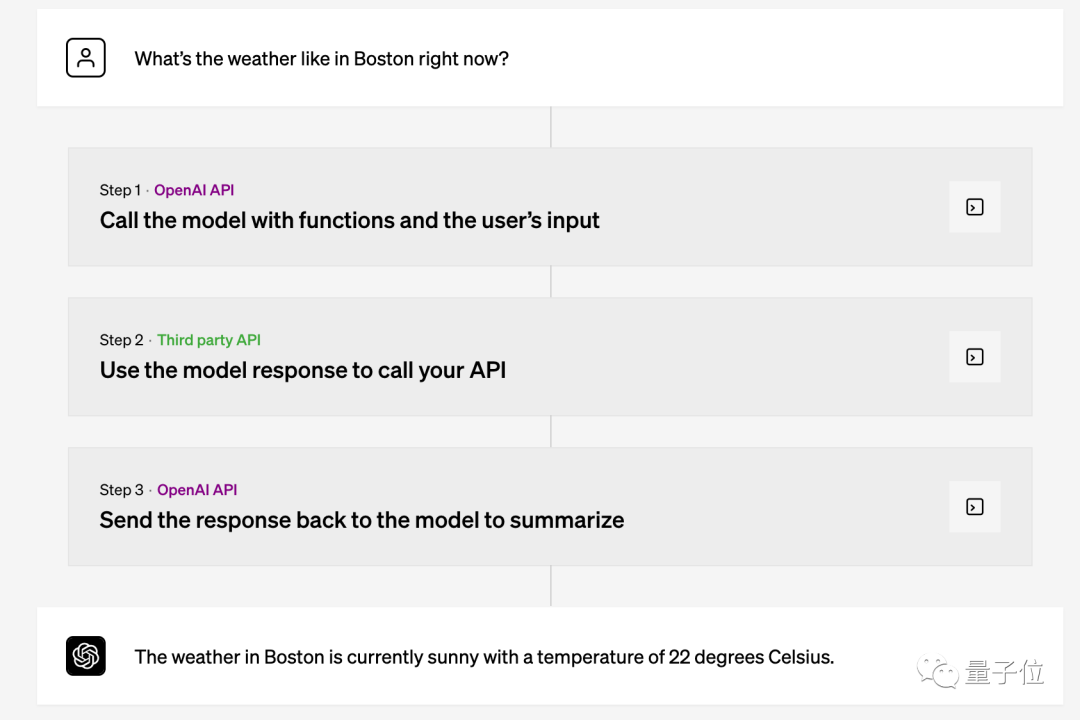 最核心的是API新增函数调用(Function calling)能力,与网页版的插件类似,API也能使用外部工具了。