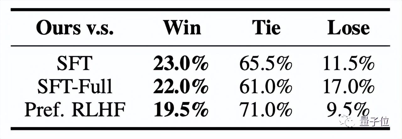 然后,对不同的微调方法(SFT监督微调、Preference RLHF)进行了评估: