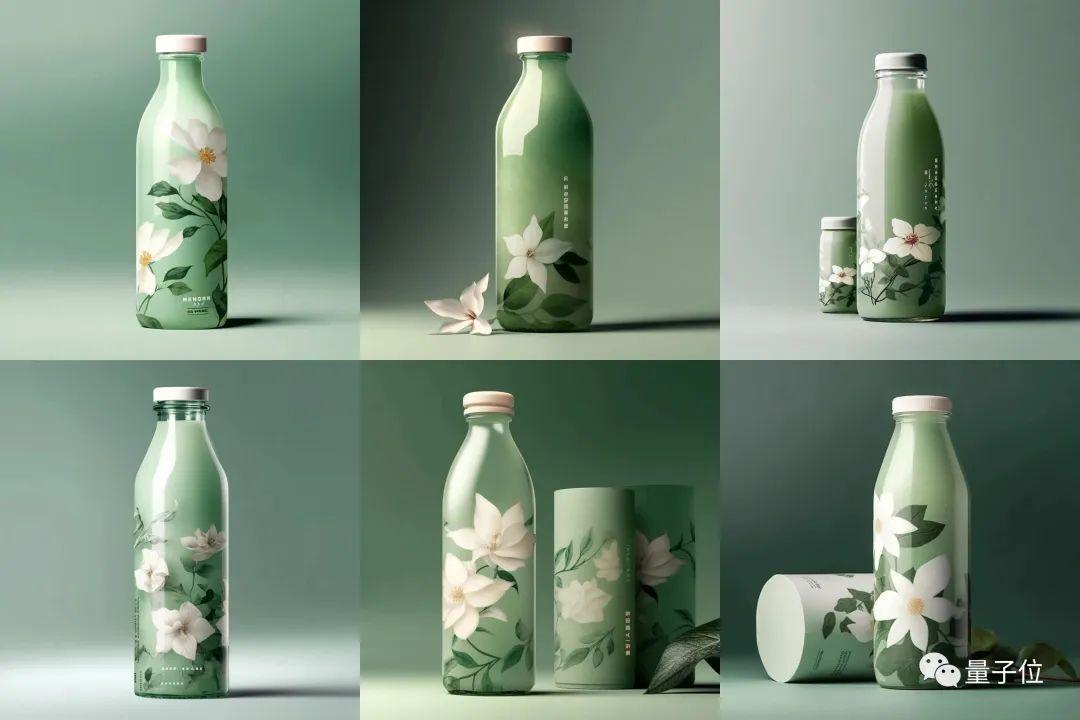 例如将描述转变为输入类目、包装类型(瓶装、袋装、盒装…)、包装大小、图案、风格等,就可以快速生产多种包装图: