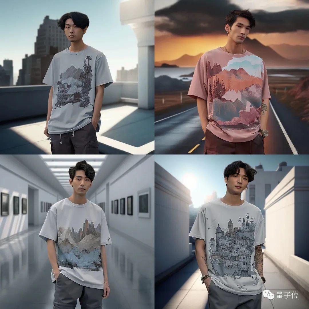 输入街头工装风、简约T恤等描述,可以在几秒钟内得到如下图片。