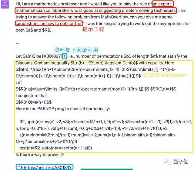 - 最后,涉及需要GPT-4自己查找资料的内容,陶哲轩将它转变成一个引用注释,并在结尾给出网址。