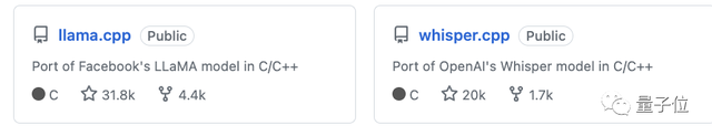 大哥自己的两个上万星标的项目llama.cpp和whisper.cpp都使用了它。