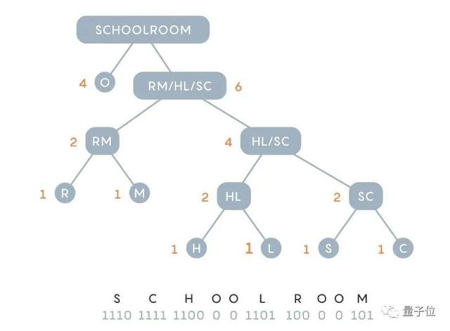 相比之下,哈夫曼的方法,比如就从不常见的r和m开始,将其组合成一个字母对。