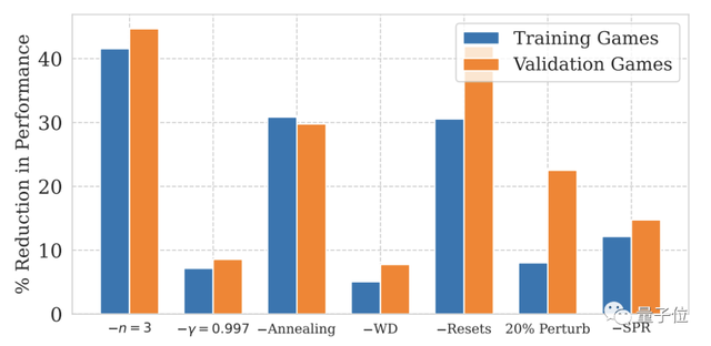 - 更高的卷积层重置强度:提高卷积层重置强度可以增大面向随机目标的扰动幅度,让模型表现更好并减少损失,BBF的重置强度增加后,扰动幅度从SR-SPR的20%提高到了50%