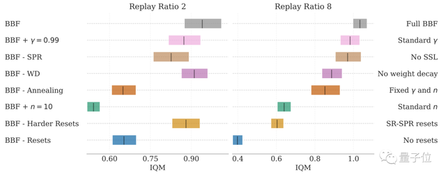 考虑到部分用户不愿花费RR=8的运算成本,DeepMind同时开发了RR=2版本的BBF