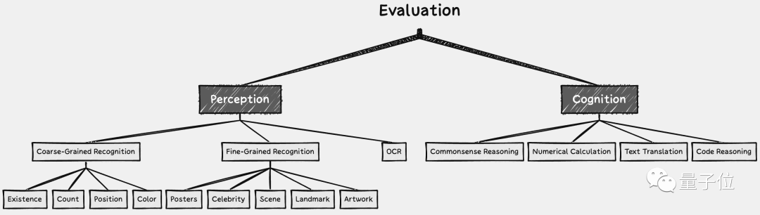 总榜单可以看做是模型“整体能力”的评分,分为感知类和认知类,14个子任务则是其中的一些细分小任务,可以评测多模态大模型是不是更擅长做某件事。