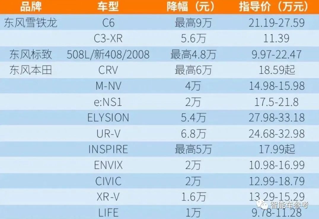 △当时部分参与价格战的车型东风汽车的7个品牌、56款燃油车型也开启降价,降价幅度从1万到9万,后来凯迪拉克、上汽大众、奇瑞等车企也纷纷加入进来,优惠幅度一度达到13万。