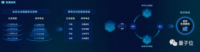 自动生成海量测试用例;诱导式对抗检测系统;根据诱导生成模型和标准评价模型生成测评报告