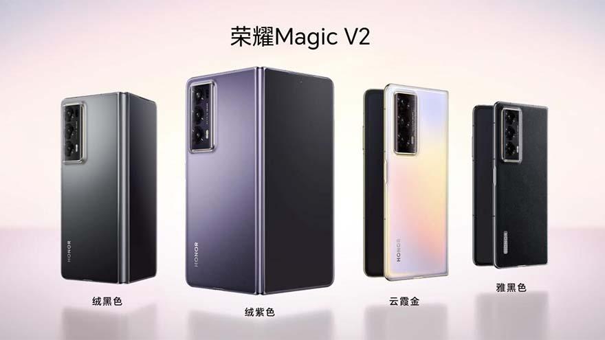 荣耀Magic V2提供雅黑色,绒黑色、绒紫色、云霞金四种配色;至臻版则提供雅黑色配色,并在包装内预置手写笔。荣耀Magic V2提供16GB+256GB和16GB+512GB两个版本,售价分别为8999元和9999元,荣耀Magic V2 至臻版提供16GB+1TB存储容量,售价11999元。荣耀Magic V2系列将在2023年7月12日21:30开启预售,并在2023年7月20日10:08起在荣耀商城、各大授权电商平台、荣耀体验店、授权零售门店正式开售。