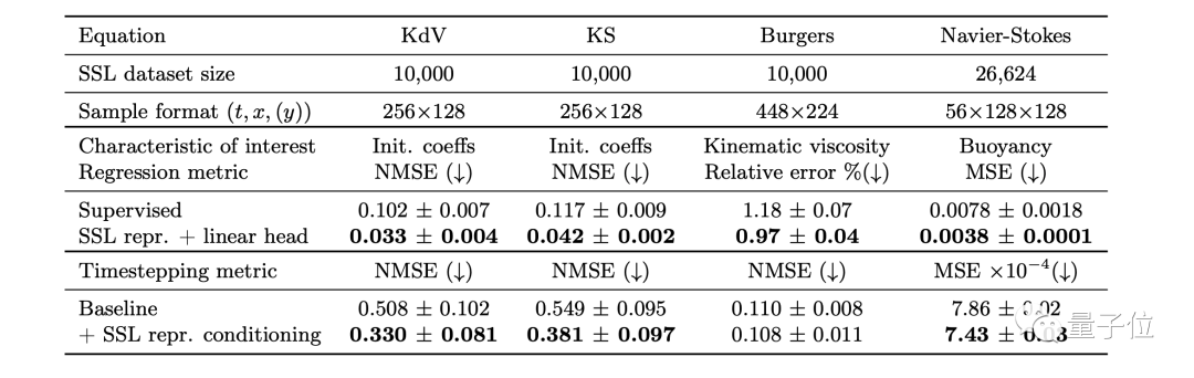 总体而言,实验结果证明了自监督表表征学习在偏微分方程中的有效性。