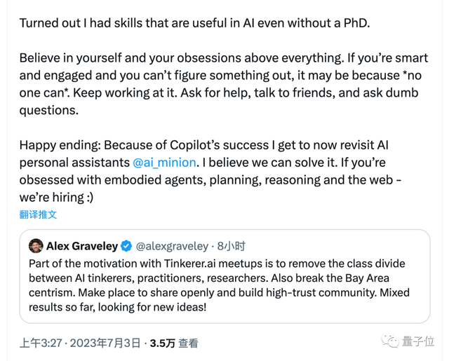 ……事实已经证明,即使没有博士学位,我也拥有在AI领域发挥作用的能力。