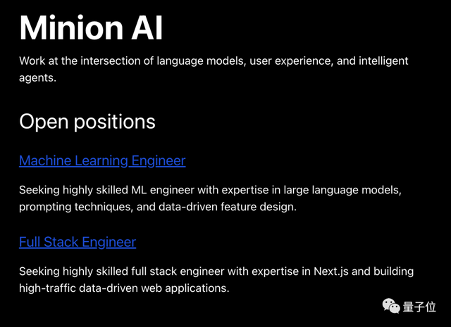 招收机器学习工程师和Web应用开发全栈工程师两种职位。