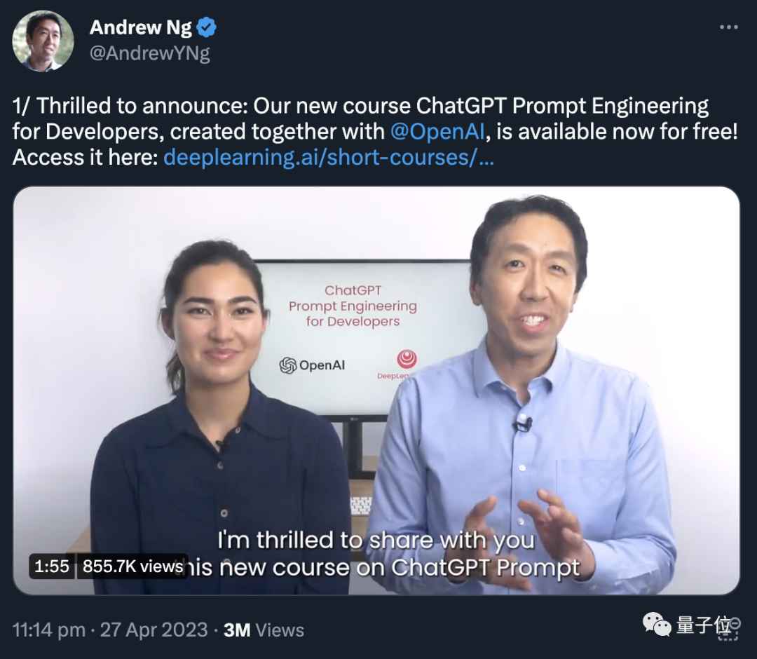 现在已经有很多关于“提示工程”的教程,之前DeepLearning.ai创始人吴恩达与OpenAI开发者Iza Fulford联手推出ChatGPT提示工程。