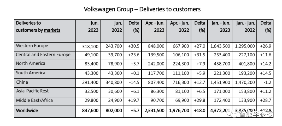 并且从销售量来看,虽然上半年大众在全球交付437.22万辆汽车,同比增长12.8%,纯电车销量达到32.16万辆,同比大涨48%。