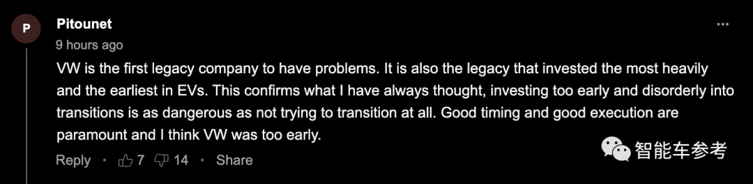 例如在大众老家德国,电动车需求量比预期低了30%。大众一工厂不得不裁员300人,电动车生产线上的员工也开始放假。