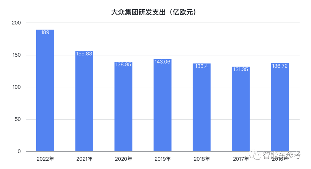 拿研发投入来说,从2016年拿出转型计划开始,大众累计研发投入至少有1031.21亿欧元(约8269.53亿元)。