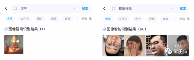 以搜索单个词汇为例,比如“比耶”和“挤眉弄眼”这种模糊的表达,智能搜索就秒懂: