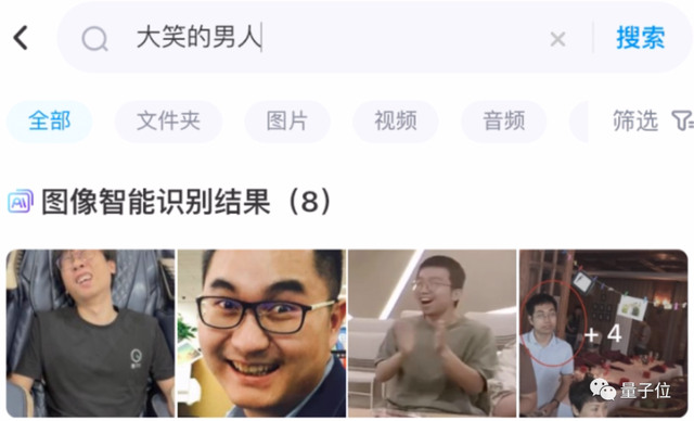 喏,只需要在网盘的搜索框里输入“大笑的男人”,立马就能检索到相关图像。