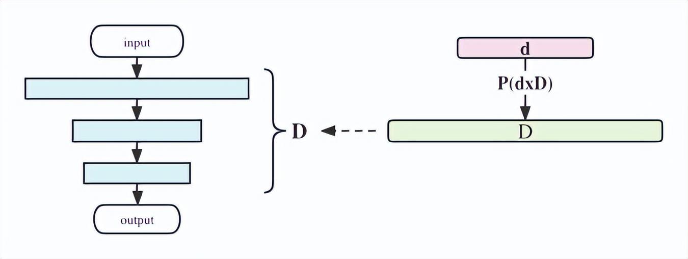 表示随机初始化的一个参数并且在训练时是不进行更新的,P是一个随机初始化的D×d大小的矩阵且训练时也不进行更新,