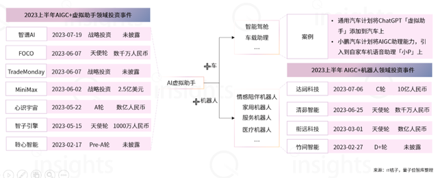 目前许多大厂和轮次靠后的公司都在积极探索两者与AI的结合。2023上半年融资量级最大的两家——智谱AI和 MiniMax均涉足此赛道。