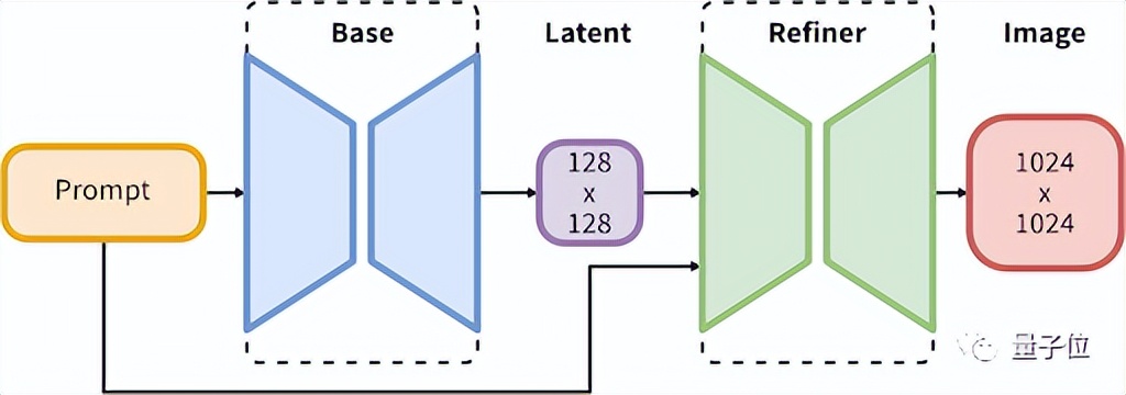 它创新性地使用了一个基础模型(base model)+一个细化模型(refiner model)。