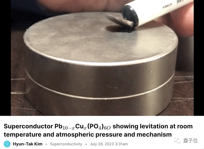 - 韩国LK-99作者发布新视频,样本室温25度悬浮,已有网友估算磁化率2023-08-04