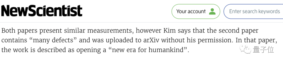 论文发布后,Hyun-Tak Kim接受《新科学家》说,两篇论文都使用了相同的方法,但“首个室温常压超导”这篇里有许多缺陷,并气愤表示: