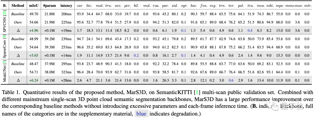 相比之下,MarS3D参数量只有约100K大小,却能将主流点云分割模型的性能提升近5%。