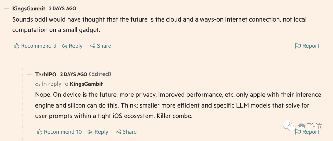 最后,回到这次最新招聘举动,一些网友对于苹果要在端侧部署大模型的计划也表现出了很高的期待: