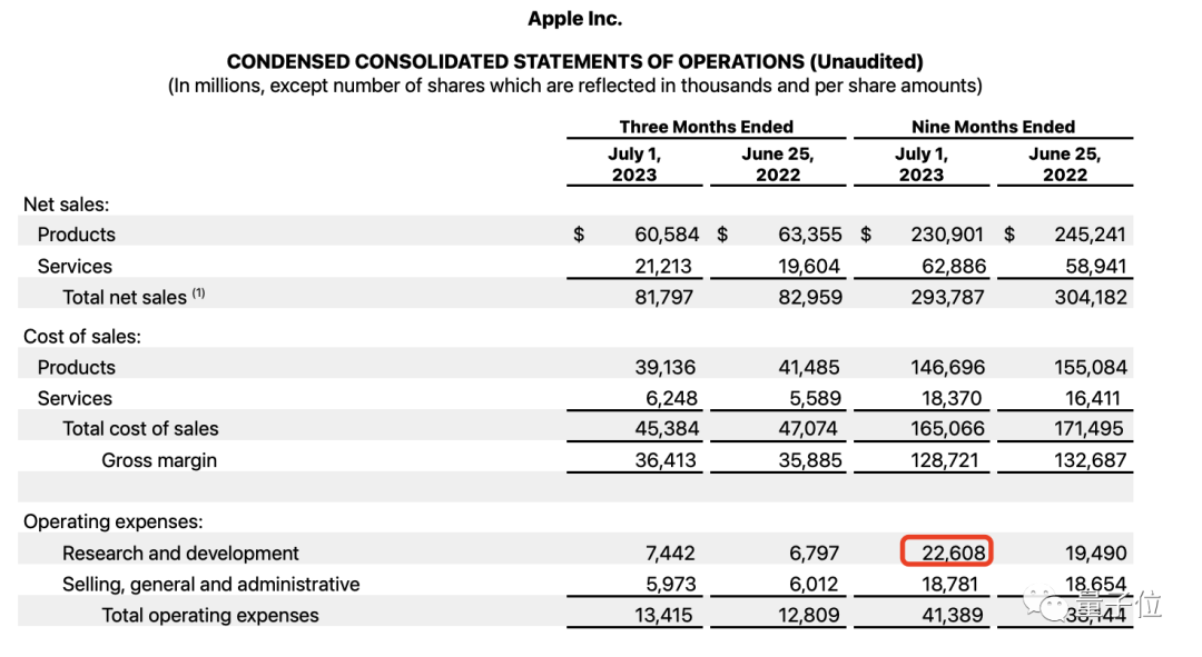 与此同时,我们也注意到,苹果今年的研发支出已经比去年同期多了30亿美元(200多亿人民币),库克透露,一部分就是由AIGC投入带来的。
