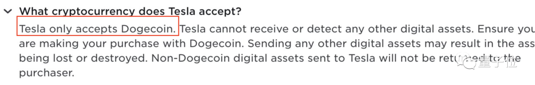 特斯拉官网显示,付款方式接受加密货币,但仅限狗狗币付款。