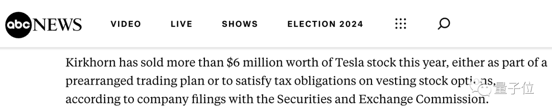 不过有意思的是,在公布离职消息前,根据提美国证券交易委员会(SEC)文件显示,他今年已经抛售价值600多万美元的特斯拉股票。
