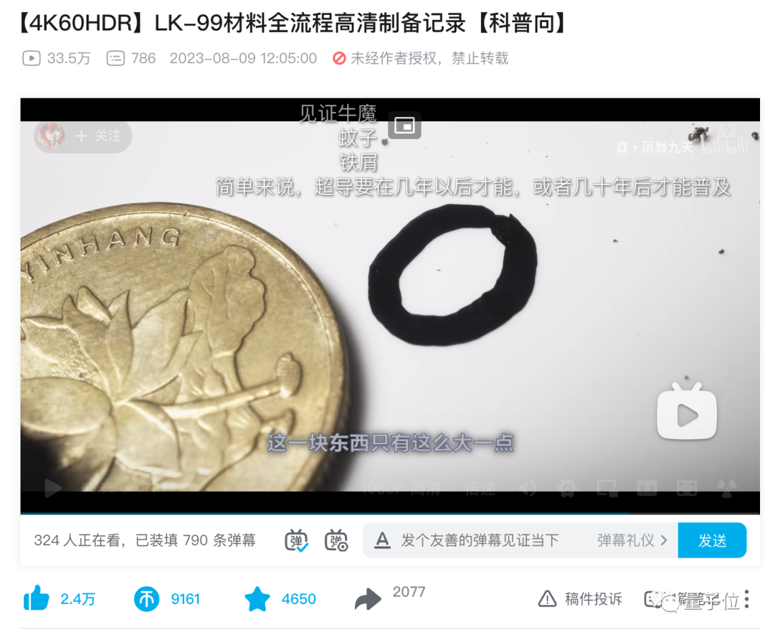 先来看B站科普up主真·凤舞九天,他主要目的是录制4K高清实验过程给大家科普。